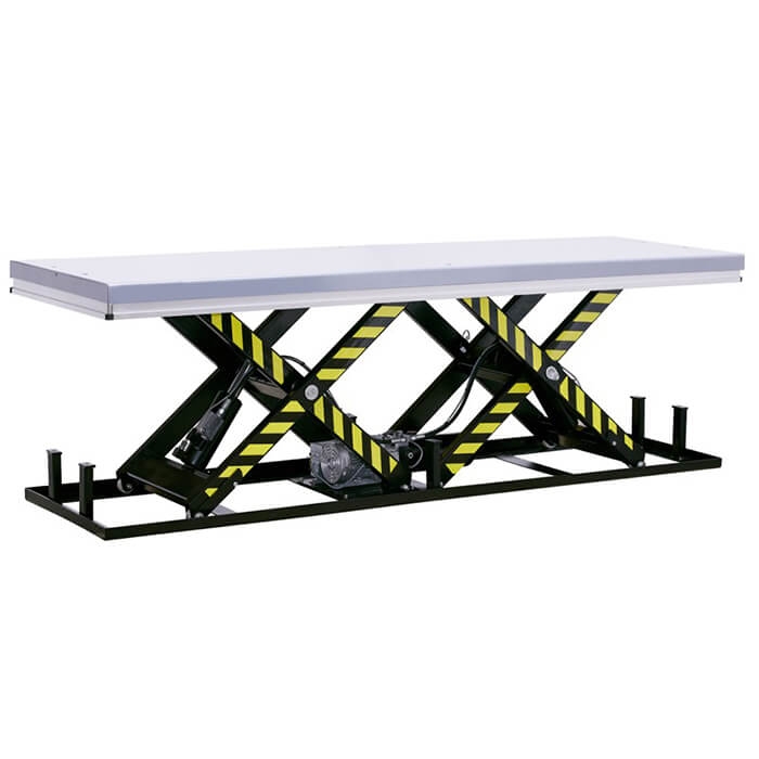 Tandem scissor lift tables with high quality double horizontal scissors and 2000kg lift capacity. The lift tables are ideal for lifting long, heavy loads and can be mounted on the floor or in a pit. Also ideal for use as a large working platform. They are fully tested prior to despatch and are ready to use when delivered. Each table is CE marked and complies with the requirements of EN 1570-1 + A1, 2nd version 2014-10-09. Accessories are available to order, including extra hand controller and limit switch.