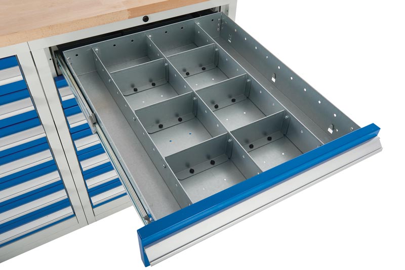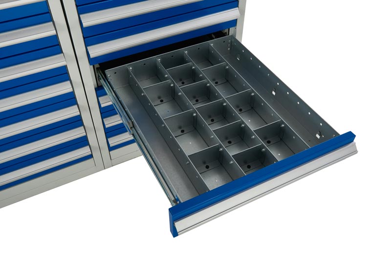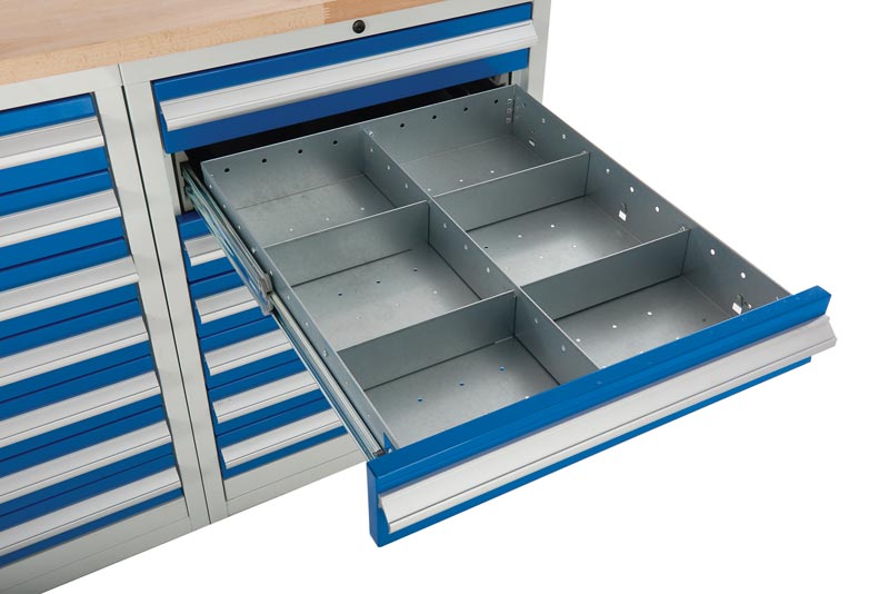 Easily divide up your Euroslide drawer storage space to better house smaller tools, components and accessories. Each kit comes flat pack so you can configure each drawer to your requirements. Choose from kits that can create 4, 6, 10 or 16 compartments, that can be altered in 25mm increments inside the drawer. Suitable for 600mm wide Euroslide cabinets with 100mm, 150mm and 200mm high drawers.