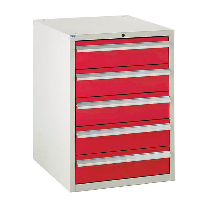 Euroslide cabinets offer versatile storage for tools and components in your industrial workspace. Each drawer is suitable for storing heavy tools and equipment safely and securely, up to 100kg in weight per drawer.