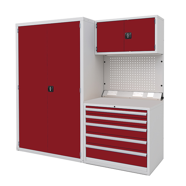 The Euroslide Modular Workshop Kit 3 provides versatile storage with a multitude of applications with cupboards, drawers and standing tool cupboard. Create the ultimate workshop or garage fit-out with our euroslide modular workshop kits, available in Blue, Dark Grey, Green and Red.