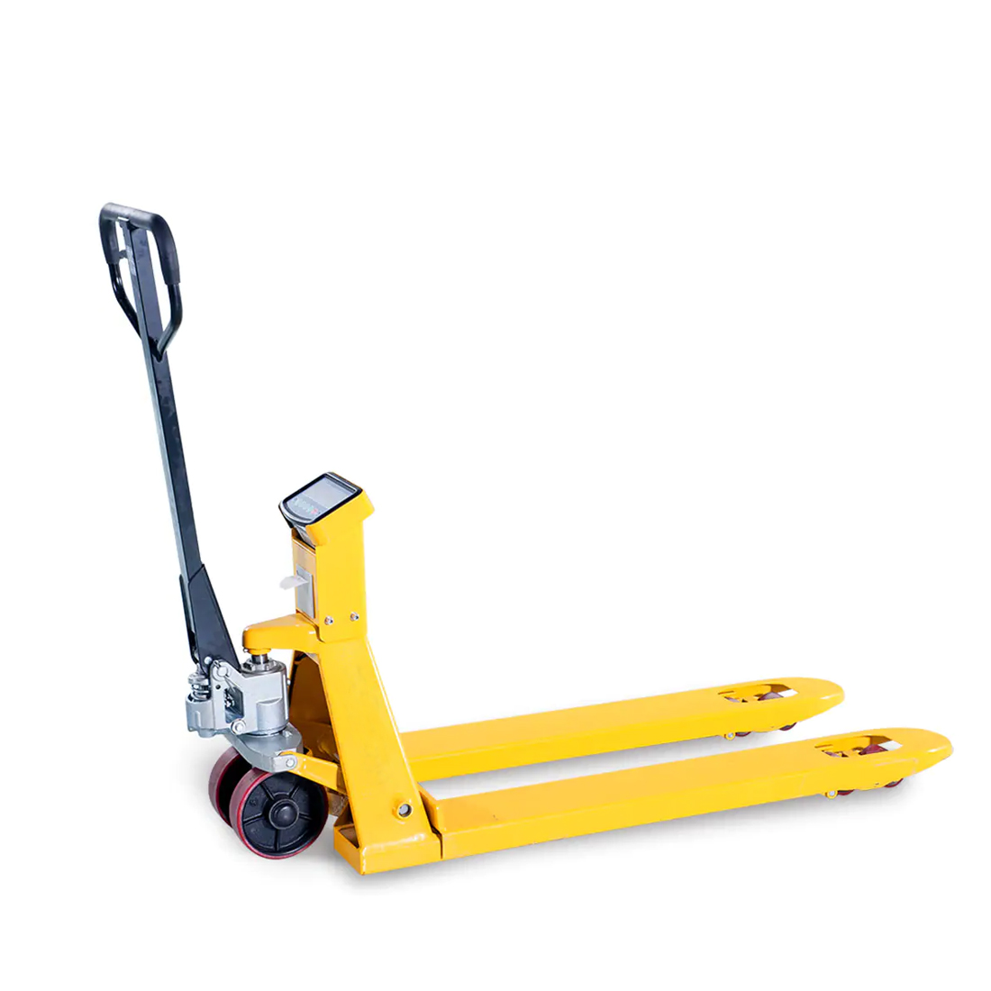 The weighing scale pallet truck is powered by a battery voltage of 6 Volts and a battery capacity of 4Ah. The battery is durable with a rechargeable battery via an external charger, providing up to 40 hours of continuous operation on a single charge. This extended battery life ensures reliable performance throughout multiple shifts, reducing downtime and the need for frequent charging. This is ideal for busy workplaces where the pallet truck may be in near-constant use throughout the day.