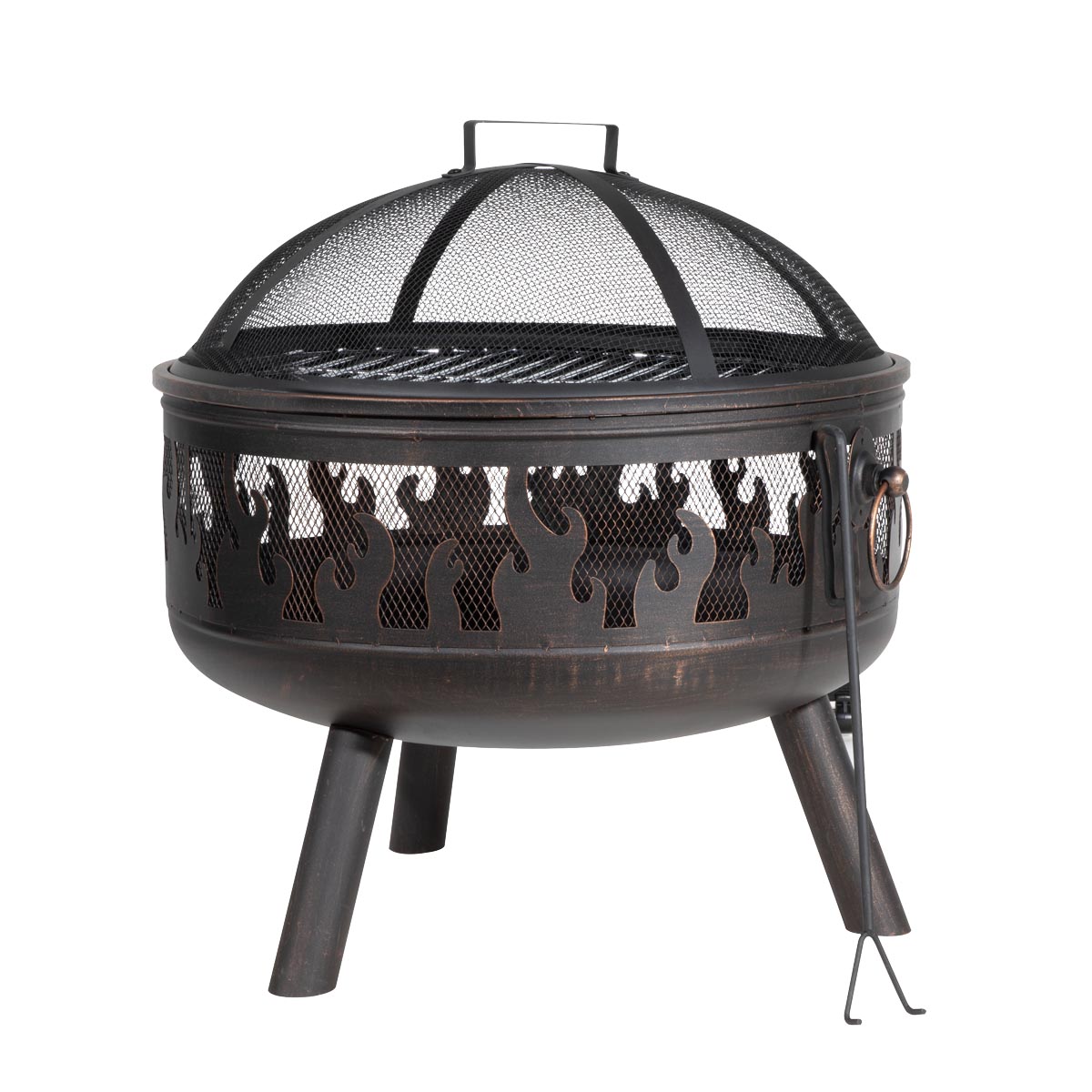 Features galvanized grill giving the option of an alfresco dining experience. Includes mesh safety screen to prevent embers and sparks flying. Suitable for use with untreated wood and logs. Supplied with fire poker.