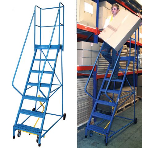 Sturdy Warehouse Steps - 8 Tread - Steel Mesh