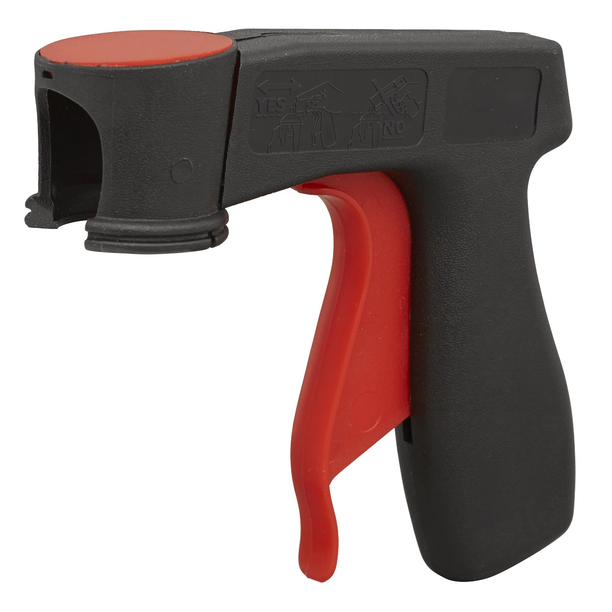 Trigger handle grip design manufactured for comfort and ease of use. Universal fitment allows for use with multiple aerosol can cap types. Compact design made from a tough and durable plastic. Trigger on the handle allows for spray control.