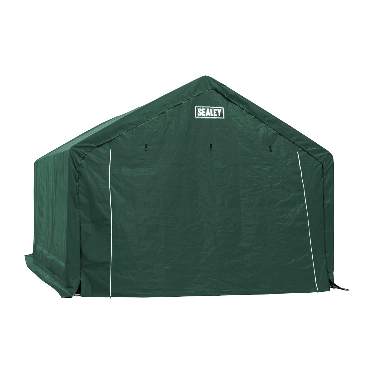 Manufactured from PE (polyethylene) material with a 3-layer construction and rip-stop to help prevent tears. UV Resistant and offers long-life and protection to stored items. UV Resistant and offers enhanced protection to stored items, extending to the floor to further protect against crosswinds. Features ratchets on each corner ensuring the tarpaulin cover is always under tension and secured to the frame which helps protect the car port during wind and rain. Includes a full width roll down door that makes accessibility easy. Zips keep the door shut securely and toggles can hold the door up and out of the way. Zinc plated steel tubing provides protection from rust and corrosion. Push-fit tubing makes assembly simple. The tarpaulin cover ties onto the frame and hold the ratchets in place, ensuring the cover remains taut.