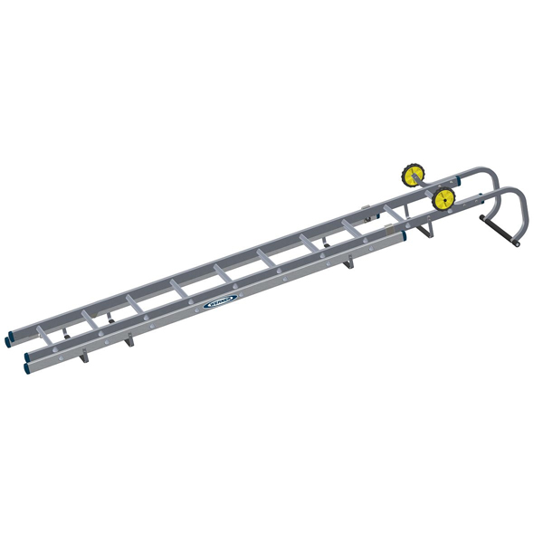 The Werner Double Section Roof Ladder 3.21m has an optimum weight frame for ease of positioning with no compromise on strength. Fitted with a heavy-duty roof hook with large non-slip rubber end bar for a superior apex fit. Overall length 4.89m.