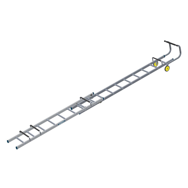 The Werner Double Section Roof Ladder 3.77m has an optimum weight frame for ease of positioning with no compromise on strength. Fitted with a heavy-duty roof hook with large non-slip rubber end bar for a superior apex fit. Overall length 6.01m.