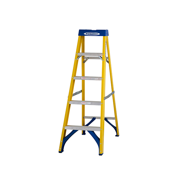 The Werner 5 tread swingback stepladder is constructed using extremely durable, non conductive, seven-layer fibreglass rails that are highly resistant to weathering. Approved to the latest EN131 standard. For Professional Use.