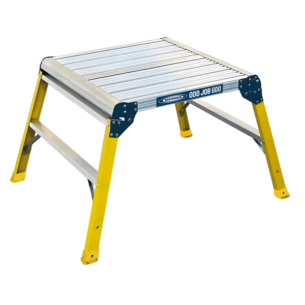 The Werner Odd Job 600 Fibreglass Work Platform has an extra-large platform and is constructed using durable, non-conductive fibreglass legs. Perfect for professionals needing a larger work surface around the worksite, especially around electricity.