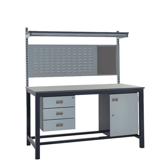 The bench is a customer favourite, as it includes under-bench storage with the option of single or triple drawer storage, plus a cupboard. The framework is sturdy with a powder-coated light grey finish, to withstand regular use whilst keeping its appearance. The bench combines practical functionality with a professional feel, offering numerous extra accessory options as convenient pre-assembled kits for you. This workbench is high quality and built to last, unlike more budget options on the market.