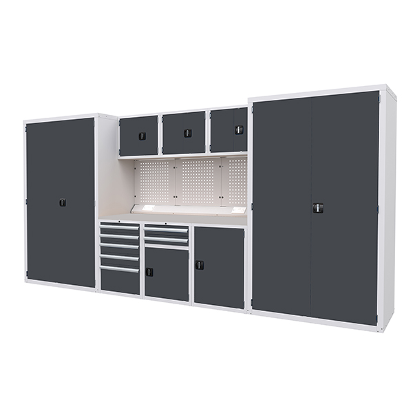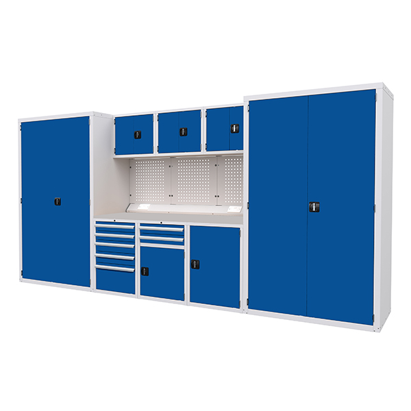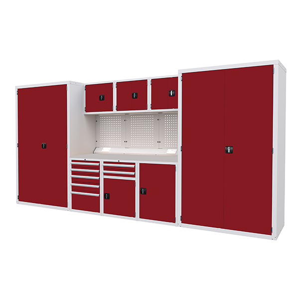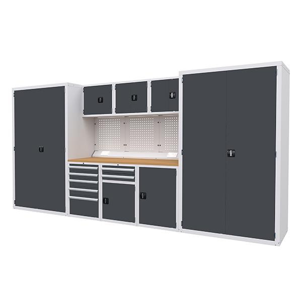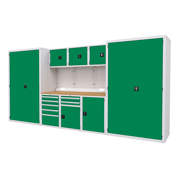 The Euroslide Modular Workshop Kit 6 is one of the largest in our kit range with a variety of storage options including above and below lockable cupboards, cabinets and sliding drawer units. It also features back panels, choice of worktop and fitted service duct for power tools. Choose this kit for the ultimate workshop or garage fit-out with our extensive range. There is a Euoslide Modular Kit to suit every environment and budget.